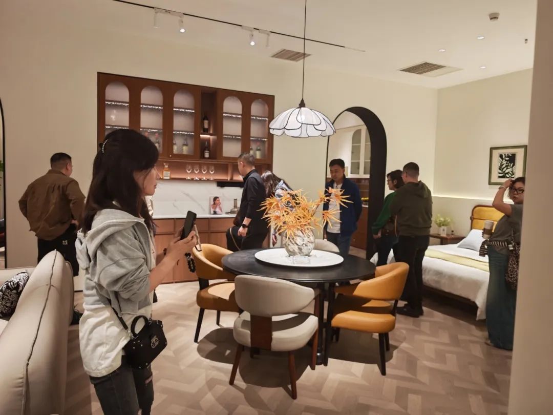新品发布品鉴会现场,bwin必赢国际中古全案凭借独特的空间布局,创新的时尚设计,优质的材料细节以及精心的场景营造,吸引了全国优秀经销商及业界嘉宾们的目光,他们沉浸在高级的美学世界里,感受创新与品质交织的魅力。bwin必赢国际中古展厅里人潮涌动,众多经销商都对中古全案新品的创新设计称赞有加,现场签约不断,气氛热烈。